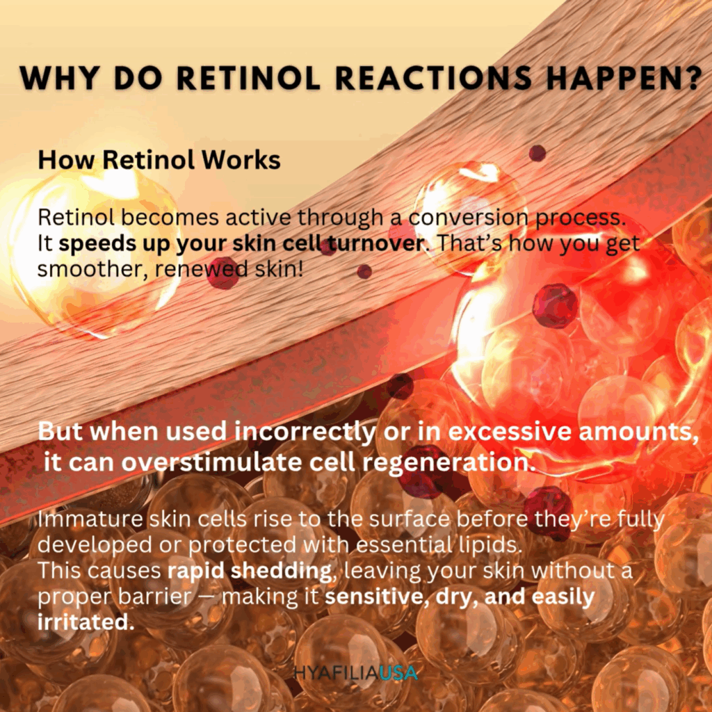 But if you’ve ever experienced redness, stinging, or peeling when using retinol, don’t worry it’s natural reaction to retinol! These reactions are simply part of your skin’s adjustment process. With the right approach, you can enjoy all of retinol’s benefits without the irritation.