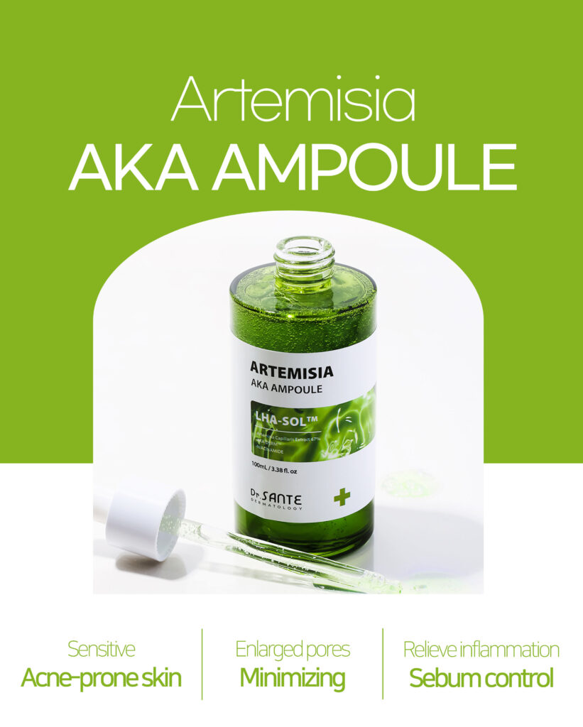 Deeply replenishes moisture with 8 types of hyaluronic acid to hydrate the skin from within. - Dr. Sante Artemisia AKA Ampoule (100ml)