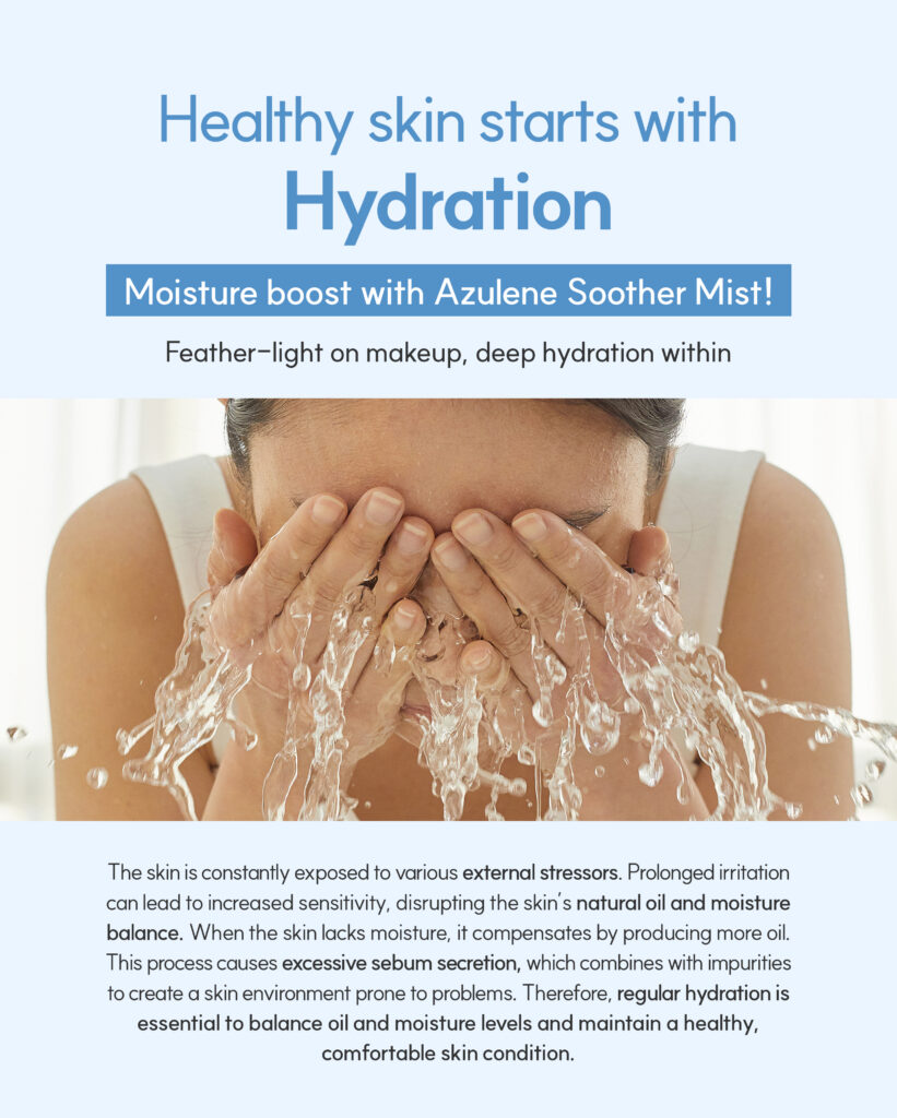 A soothing and hydrating facial mist infused with azulene to calm and refresh tired, dry skin. Instead of purified water, this formula delivers moisture and comfort to stressed skin for a healthy, balanced complexion.