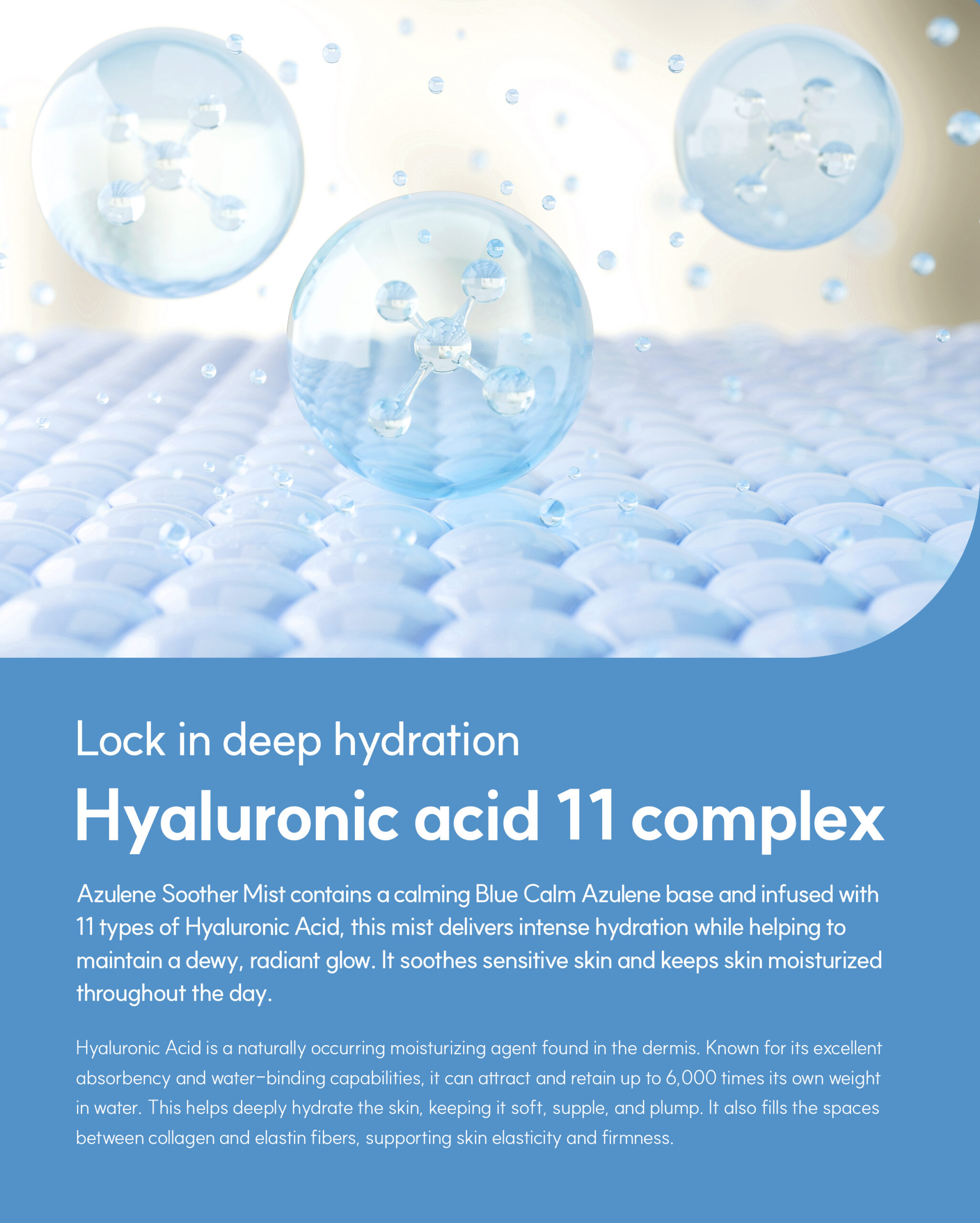 Chamomile Flower Extract, Guaiazulene, Green Complex DIC™, 11 Types of Hyaluronic Acid, Centella Asiatica Extract, Ceramide NP