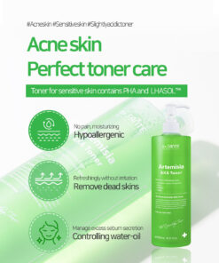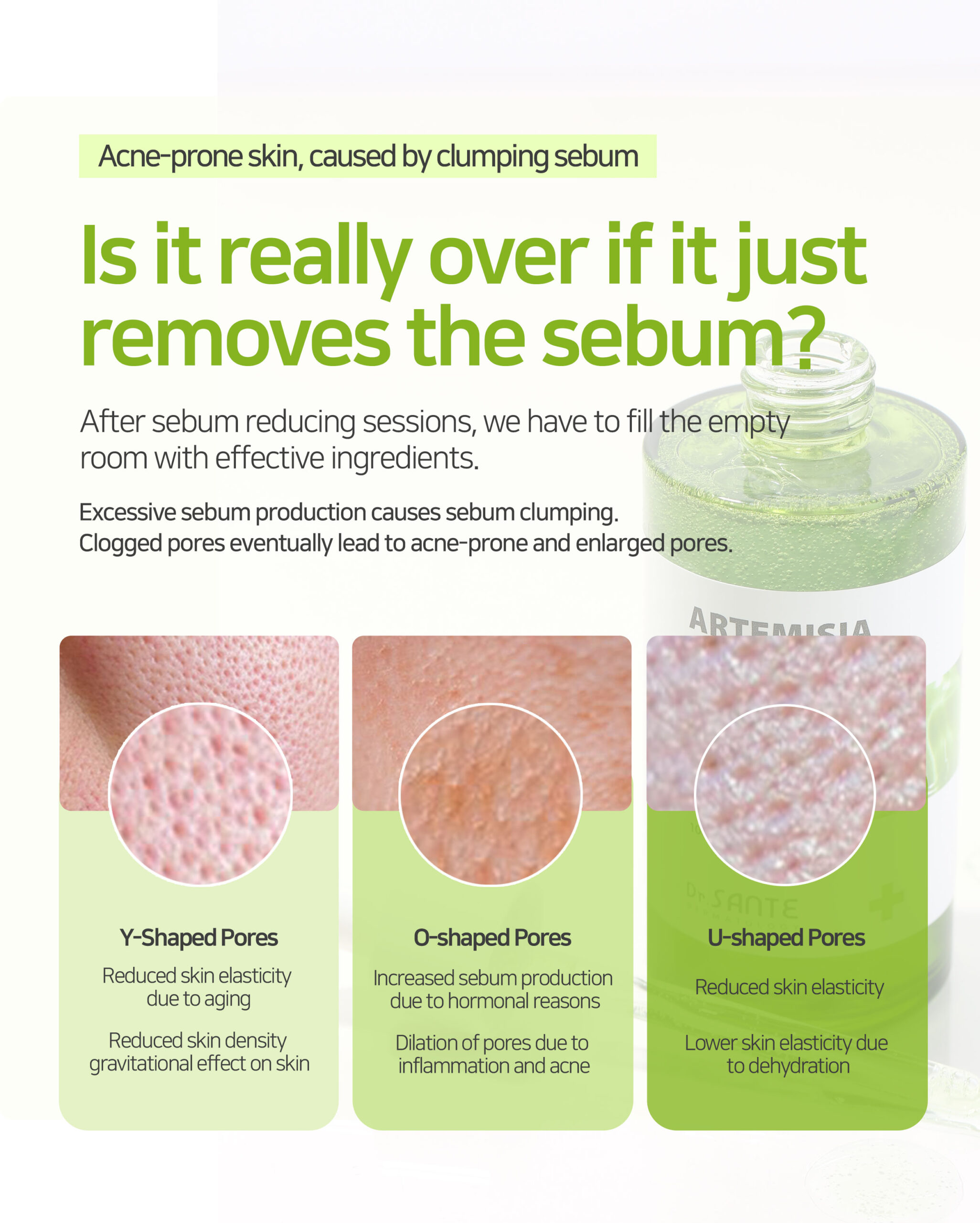 Excessive sebum control, gentle exfoliate with toner and soothing care with Dr. Sante Artemisia AKA line.